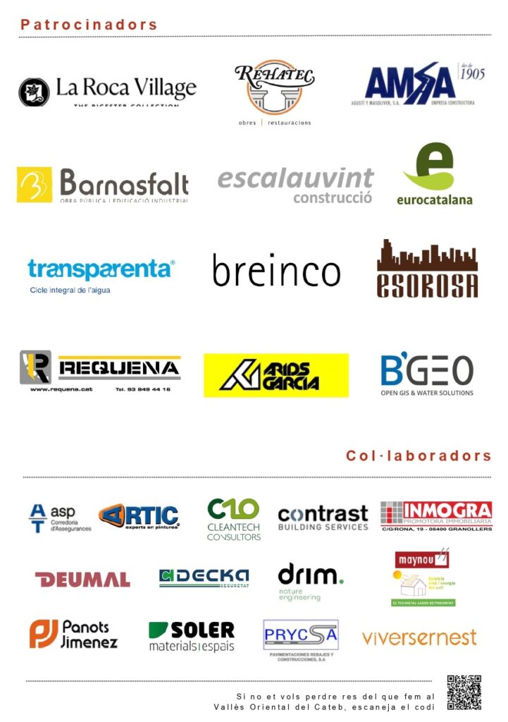 Finalment, cal donar les gràcies als nostres patrocinadors La Roca Village, BARNASFALT, S.A., TRANSPARENTA Cicle Integral de l’Aigua, Escalauvint, AGUSTI Y MASOLIVER SA, REHATEC, eurocatalana, Excavacions i Obres Públiques Requena, SA, breinco, ÀRIDS GARCIA, ESOROSA i BGEO OPEN GIS, SLU i als nombrosos col·laboradors, que ho han fet possible.